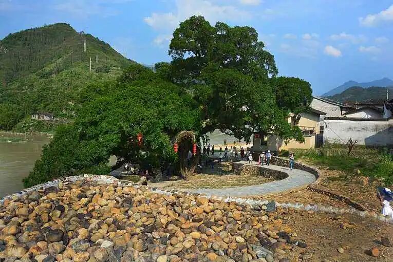 中餐后,游览【嵩口古镇】,嵩口古称嵩阳,早在新石器时期就有古越先人活动,南宋时因大樟 溪水运发达渐渐形成一个繁荣的小集市,元代置镇后,这里逐渐成为人口密集、商埠兴隆的永泰西南 重镇。元代至正年间设漈门司,明万历年间移至嵩口,称“嵩口司”。因地理位置优越,嵩口古镇自 古就是闽中重要商埠、水陆交通枢纽,是目前福州地区唯一一个国家级历史文化名镇。后前往有着“小 云水谣”之称的美丽小乡村【春光村】。20 多棵古老红榕树沿岸而植,与两棵 500 多岁的老榆树一起, 构建起“小云水谣”的独特景致,春光村村民世代以船夫为生,外出也主要靠船,每每进城都要沿着 大樟溪顺流而下,因此也保持着沿岸而居的习惯,为避免洪水冲垮堤岸,村民们用种植榕树来加固堤 岸。几百年下来,也造就了如今春光村沿岸的这片古榕。